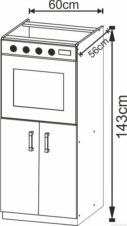 WYSOKOŚĆ/GŁĘBOKOŚĆ SZAFEK STANDARDOWYCH 143cm/56cm+front