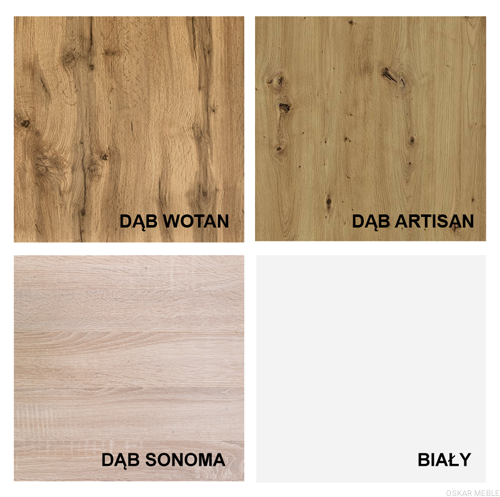 Szafki wykonane są z płyty meblowej wiórowej melaminowanej dwustronnie w wybranym kolorze. Struktura matowa/ KRAWĘDZIE OKLEJONE PCV, zawieszki regulowane